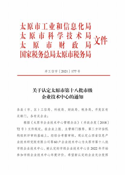 近日,经太原市工业和信息化局、科学技术局、财政局、税务局综合考察审核,优特奥科公司企业技术中心成功被认定为太原市第十八批市级企业技术中心。这一殊荣不仅是对优特奥科在技术创新领域卓越表现的高度认可,更是对其未来发展的有力鞭策。